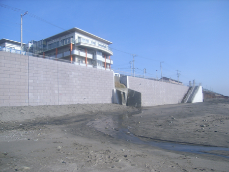 本工事は野比海岸沿いの県道212号線を高波から守る擁壁補強工事です。